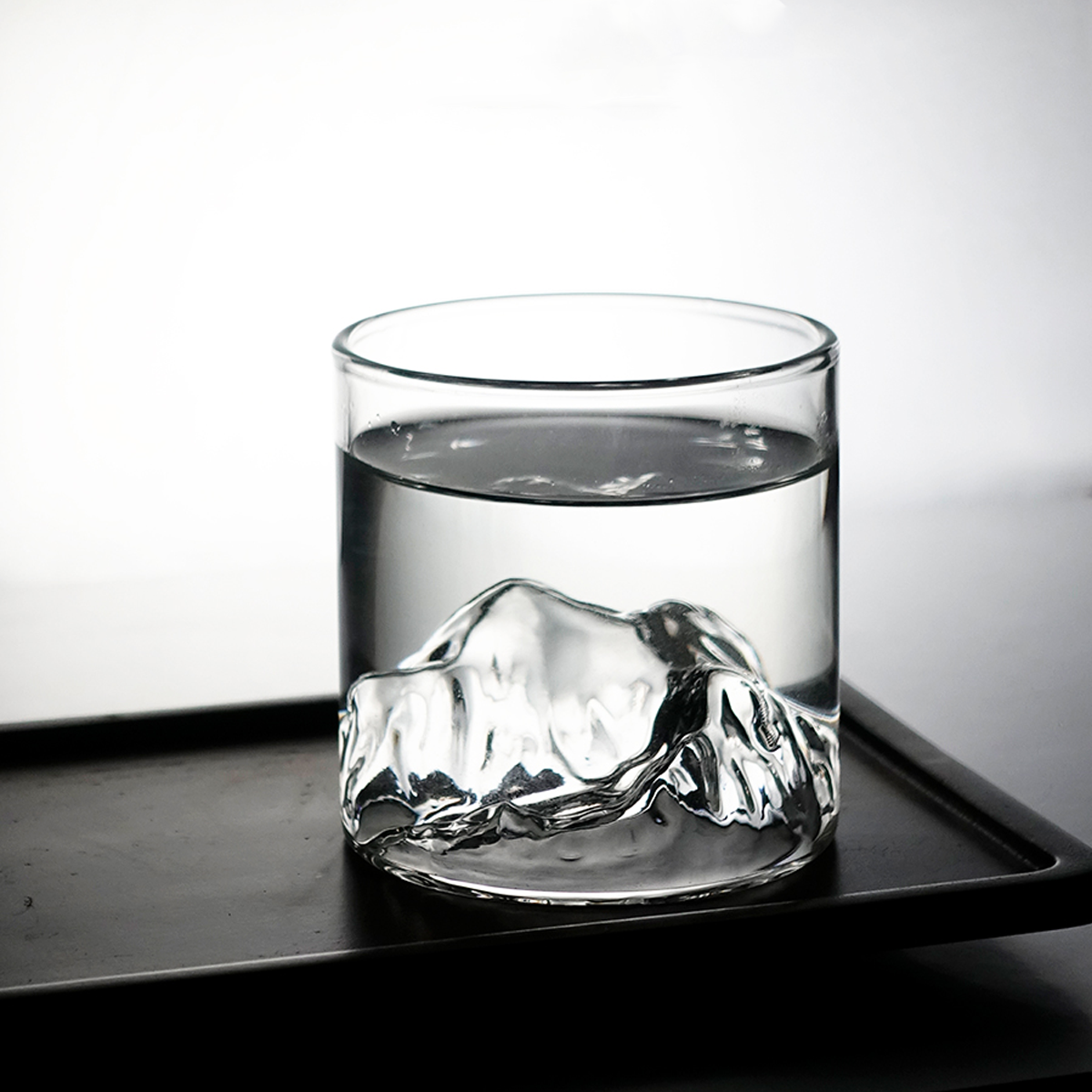 The tapered artisan glass showcases a sculpted glass Mt. Fuji base, which reflects the color of whatever you’re drinking - offering a unique visual experience.