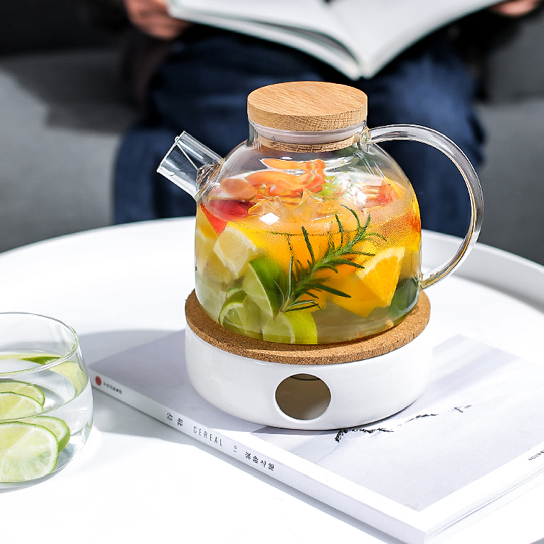 - Made from the highest quality heat-resistant Borosilicate Glass, with an Oak Wood lid with a rubber sealing ring to make it water-tight and non-slip.